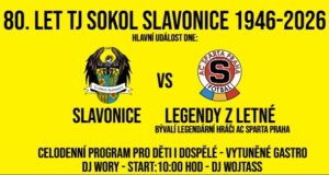 80 let tato organizace propaguje sport v regionu, spojuje generace a má široký záběr co se týče sportovních aktivit v okolí Slavonic. Pojďme toto výjimečné výročí oslavit a užít si společně celý den plný sportu, hudby, zábavy, muziky. Den který vyvrcholí zápasem Slavonických fotbalistů s LEGENDAMI Z LETNÉ!! Parta kolem 14-ti-násobného ligového mistra Jiřího Novotného.